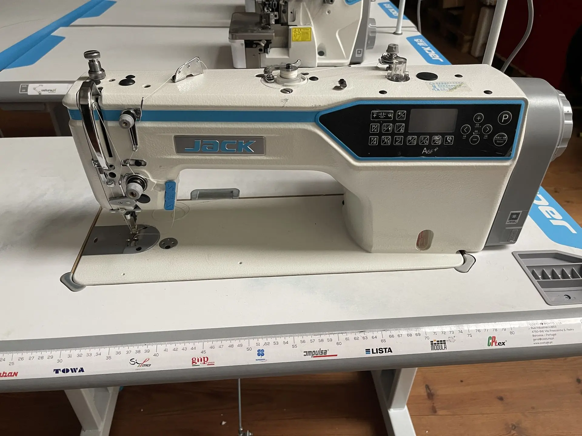 Maquina de costura com arrastador superior, corte de linha, remate automatico e levantamento de calcador automatico