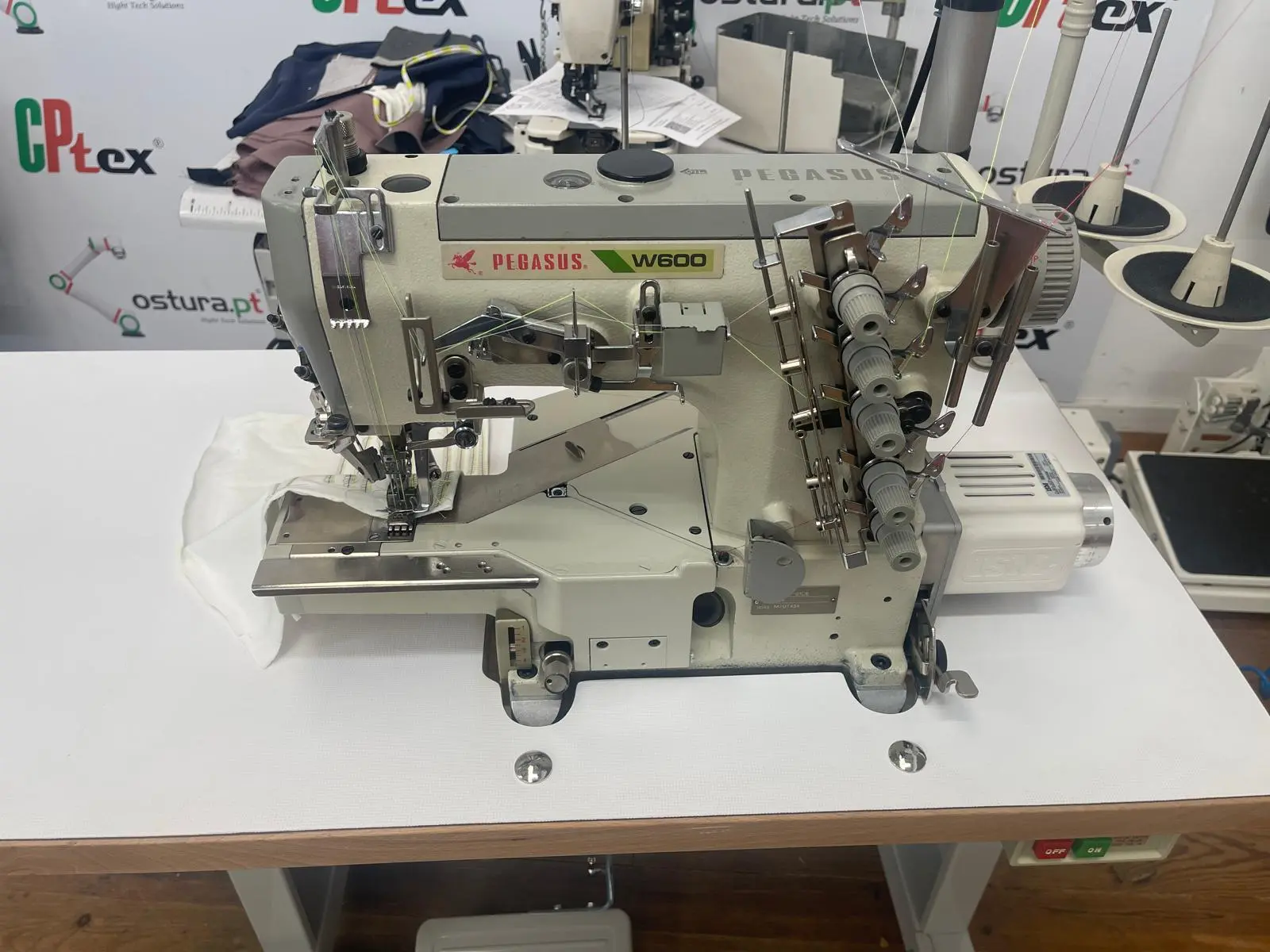Maquina de costura Pegasus de recobrimento com corte de linha e levantamento